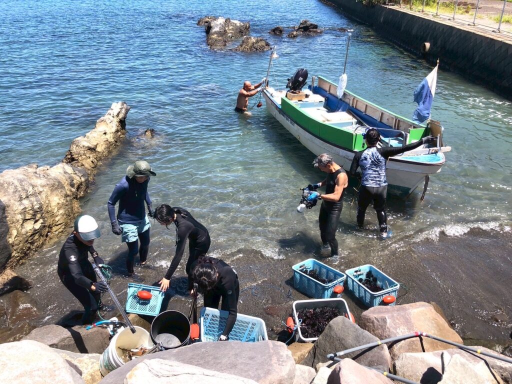 具体的には、SNSでの情報発信から海洋環境保全イベント、海藻やイカの産卵床の設置、ウニの密度管理など。直接海に入ることも少なくありません。