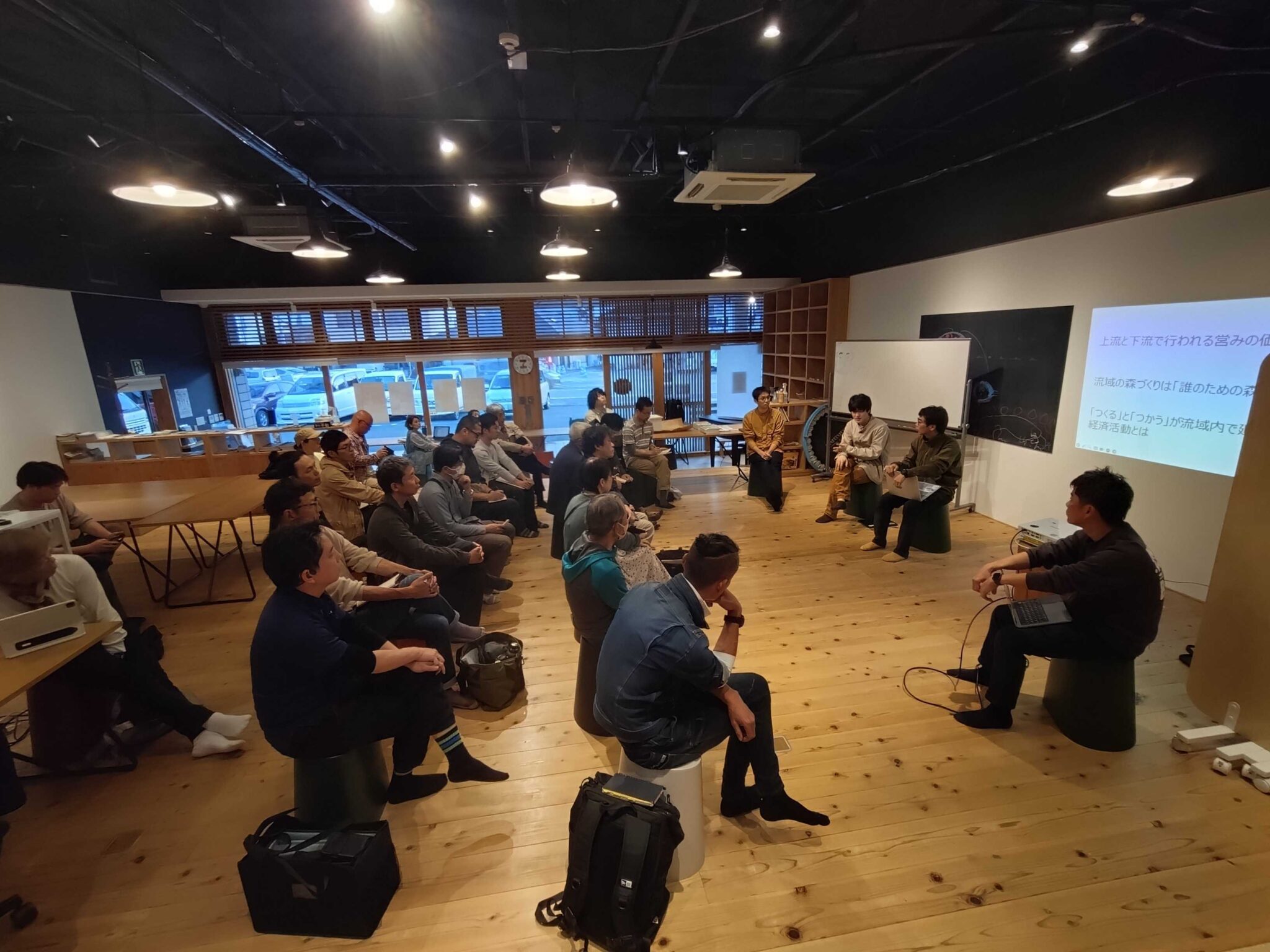 もりとみず基金に加えて、NPOれいほく田舎暮らしネットワーク(移住支援団体)や土佐町やまとしごと協同組合(特定地域づくり事業協同組合)など、複数の団体等が利用するシェアオフィス環境です。夕方〜夜間には英語教室・ダンス教室が開催されるなど、地域住民の利用も増えてきています。