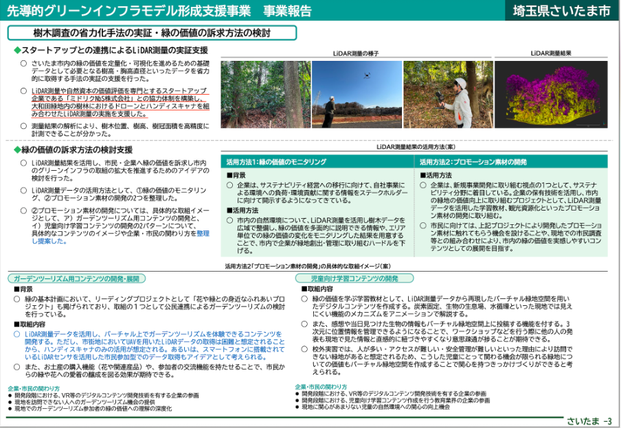 ミドリク(Midriq)では、これまで荒川流域において、並行して複数のプロジェクトが走っており、上流域に位置する秩父市や、中下流域の熊谷市、さいたま市、東京都の自治体等と連携し、自然資本やグリーンインフラの可視化に関する技術支援、自然資本の価値を生かしたブランディング・マーケティング支援(自然資本価値の流通支援)、ドローン・ロボットによる維持管理の省力化支援を行なっています。